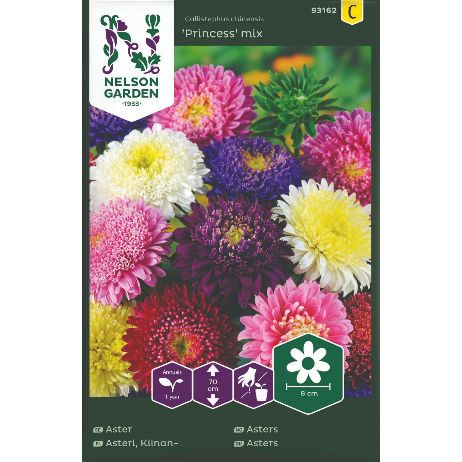 Velkjent asters som gir store fylte blomster i en symfoni av farger. Søt i både bed og i bukett. Bytt voksested hvert år for å unngå soppangrep.