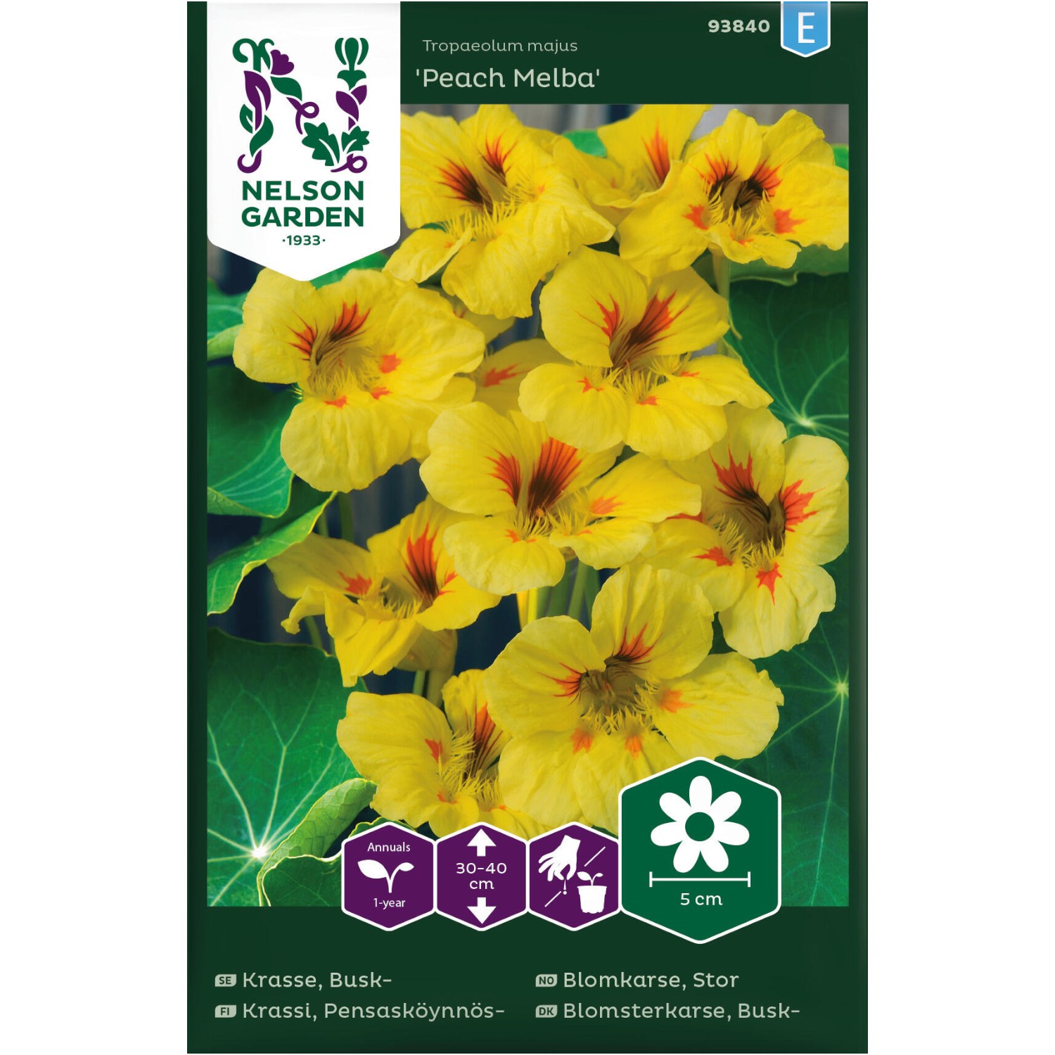 Kompakte planter med lyst gule, ferskenfargede blomster med klare røde flekker. Meget godt egnet som kantvekst, i balkongkasser, bed og i steinparti. Blomstene kan spises, dekorative i salater. Trives fint i mager og veldrenert jord.