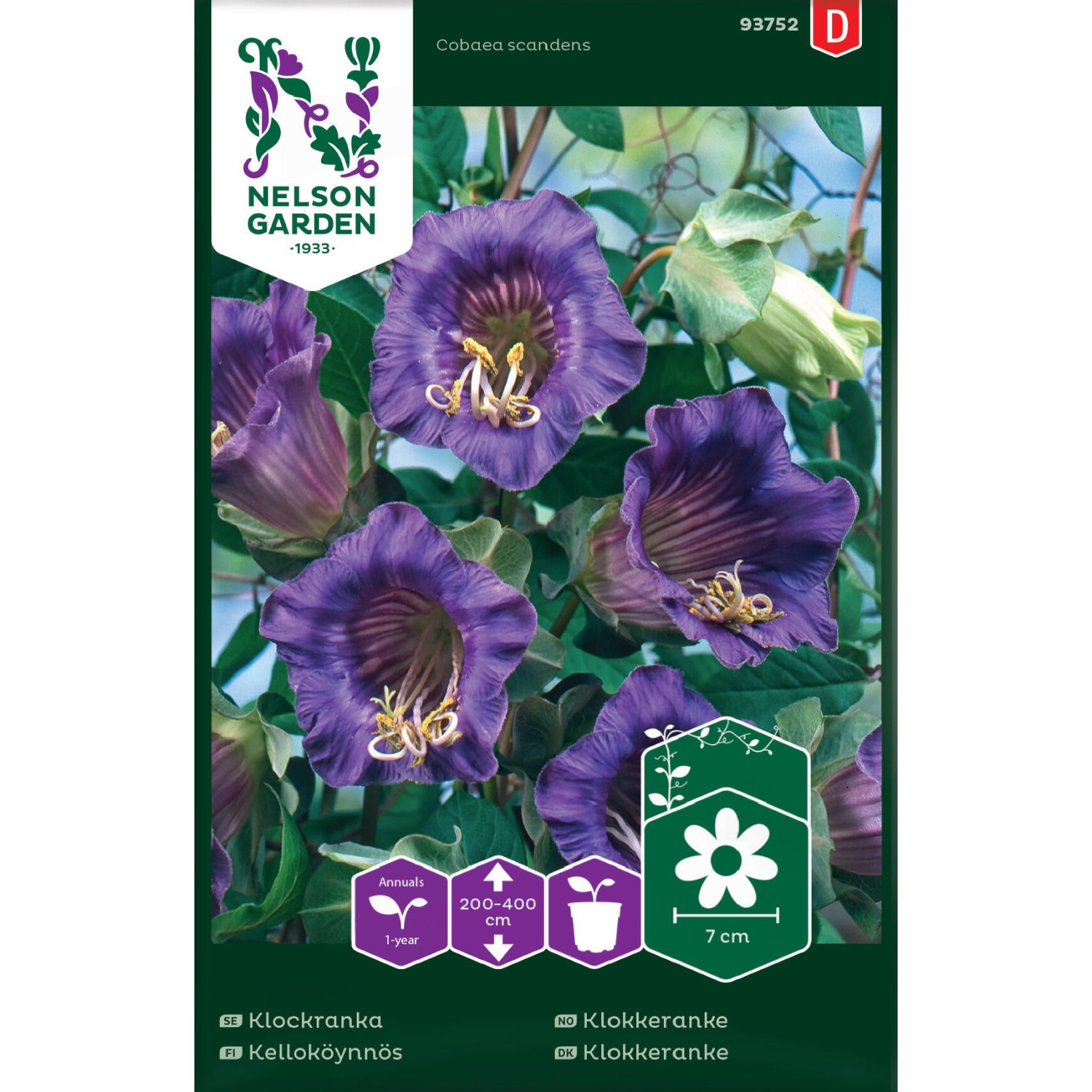 Klokkeranke med dypt blålilla blomster. Fin på solfylt sted på balkong eller terrasse. Kan dyrkes som potteplante. Bløtlegg frøene i lunket vann i en time før såing. Trenger støtte.