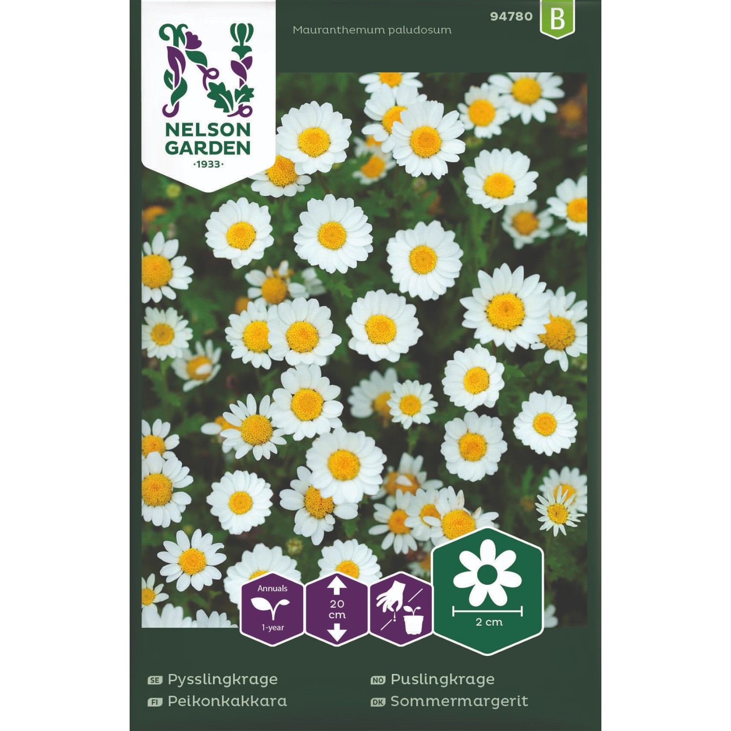 Meget nett, prestekrageliknende sommerblomst. Blomstene er ca 2 cm brede og bladverket er vakkert lysegrønt. Passer utmerket i potter og som kantvekst i bed. Trives best i næringsrik, moldholdig og veldrenert jord.