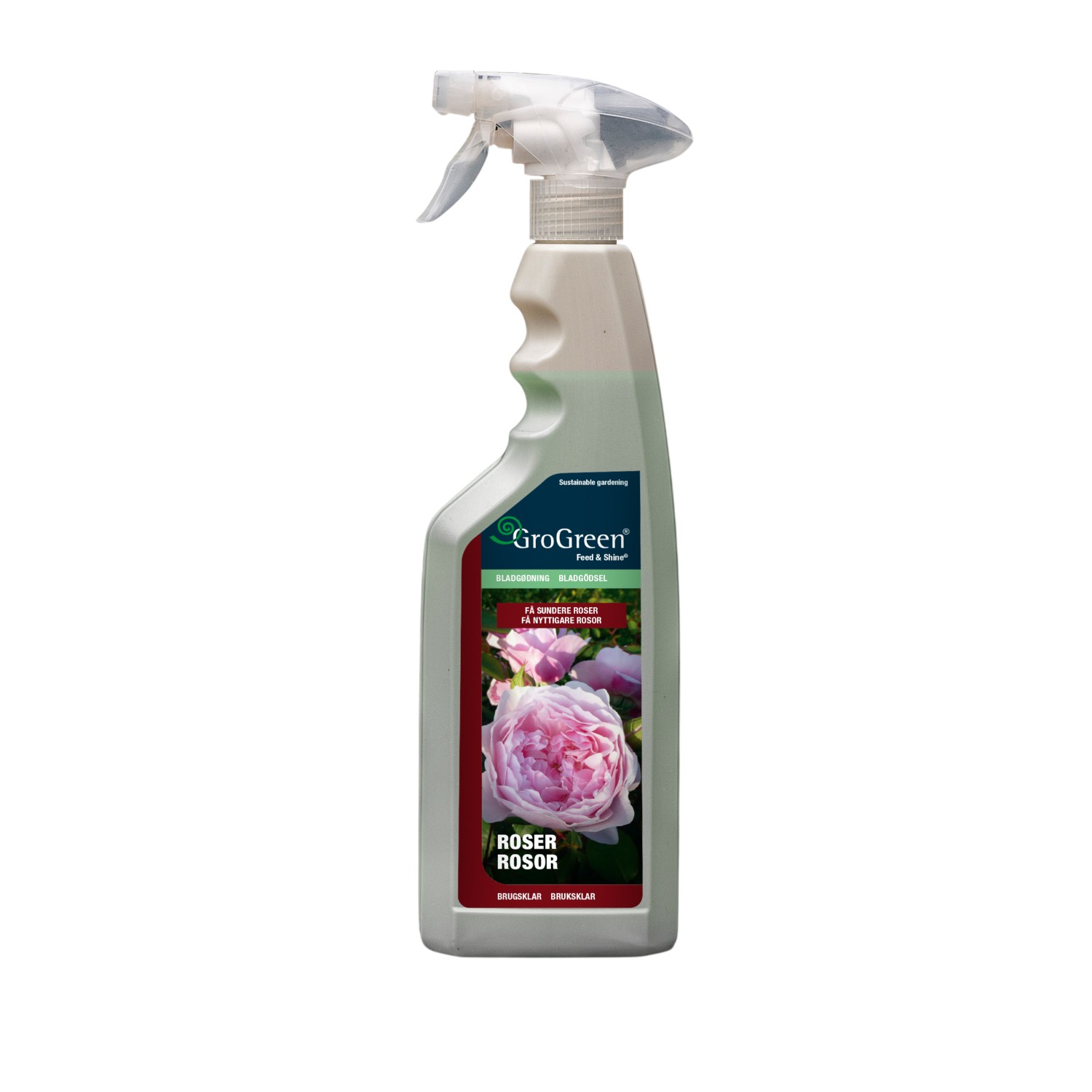 GroGreen® Feed&Shine® Roser er en bioaktiv bladgødning, der også er skånsom for naturen. Produktet er, i kombination med organisk gødning, vores bedste forslag til, hvordan du hjemme i haven, kan pleje dine roser, så de bliver stærke og flotte.